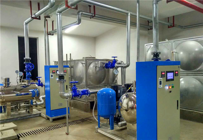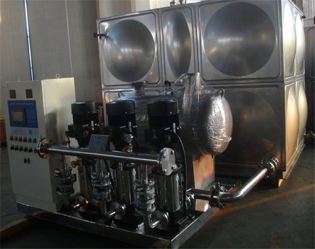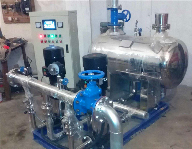 無負壓智能變頻供水設備是有無負壓裝置和智能恒壓變頻設備組成的供水設備。無負壓裝置分為開式和閉式,開式流量調節器為不銹鋼水箱(稱箱式無負壓設備),閉式流量調節器為不銹鋼無負壓罐(稱罐式無負壓設備)。將系統設備串接在市政自來水管網壓力不足的地方,設備通過壓力傳感器檢測出口壓力,將檢測值和設定值進行比較,運算出在市政自來水管網的原有壓力基礎上需要增加的壓力值,確定水泵投入臺數和變頻器輸出頻率(反應到電機及水泵為轉速)以符合用水曲線實現恒壓。